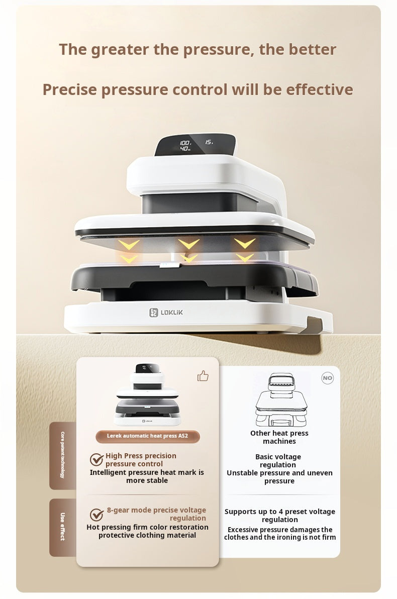 Extra dicke Materialkapazität (45 mm): Im Gegensatz zu Standardpressen verarbeitet die AS2 Materialien mit einer Dicke von bis zu 45 mm und ermöglicht so das Pressen von voluminösen Kapuzenpullovern, dicken Kissen und Canvas-Taschen.